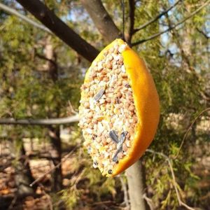 Die Sonne erwärmt unser Herz und die Temperaturen sind mild. Das wollen wir genießen und basteln draußen Vogelfutterstellen. Denn ganz schnell kann es hier wieder kalt und trüb werden. Ich möchte den Vögeln helfen, dass sie ihr nahrhaftes und maßvolles Futter an eisigen Tagen finden.
