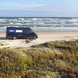 Dennoch darf man hier legal auf den unberührten Küstenstreifen bis zu 14 Tage kostenfrei campen. Auf dieser schmalen Insel können wir uns super erholen von den letzten Autofahrtagen. Mir stockte der Atem vor Glück. Endlich wieder Wasser um mich rum. Ich war völlig überdreht. Ich habe getanzt, gesungen, Quatsch gemacht, laut geschrien und konnte sogar im Wasser baden. Die Temperaturen waren recht angenehm oder uns war so warm ums Herz vor Glück. Auf jeden Fall war es sagenhaft schön. Nach ein paar Tagen parkten wir dann auf Mustang Island. Hier war es dann schon nicht mehr so paradiesisch. Alte Schuhe und Klamotten, verfallendes Holz, jede Menge Plastik, Teerstückchen und vieles mehr wurden hier am Strand angespühlt. Da es hier aller 10 Meter eine Mülltonnen gibt, habe ich mit meinen Eltern mal ein bisschen aufgeräumt. Denn Müll gehört in die Tonne und nicht ins Wasser! Das weiß doch jedes Kind. Noch länger konnten wir dennoch nicht bleiben. Ernie brauchte dringend Pflege und wir Wasser und Essen. In Corpus Christi hieß es dann erstmal Einkaufen, dumpen, Wäsche waschen. Und Ernie pflegen in Form von einer kalten Dusche, um das Salz abzuspülen und die Rostschäden zu sehen und beheben zu können