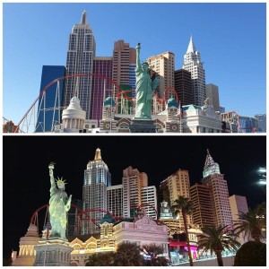 Bei 30 Grad und jede Menge Sonnenschein kamen wir in Las Vegas an und sind mit Ernie einmal über den 6,5km Strip - der Lebensader der Stadt - gefahren. Schon das war total aufregend für mich, die vielen Mottohotels auf dem Boulevard zu sehen. An Ägypten, New York, Paris und Venedig vorbei, sind wir am Westgate angekommen und stiegen in die Monorail ein. Die Sonne ging unter und Las Vegas erwachte. Rein ins Getümmel. Und was soll ich sagen, für die "leuchtende Stadt" im Bundesstaat Nevada finde ich kaum Worte. Laut, bunt, schrill, exotisch, wild, quirlig, verrückt,... Überall aufwendige Gestaltungselemente, bunte Leuchtreklame, hübsche Frauen in knappen Schmetterlingskostüm die mir alle freundlich zuwinkten, laute Musik, beleuchtete Palmen, jede Menge lange Limousinen und dröhnende Autos, von den vielen Fussgängern kaum zu schweigen... man muss es sehen - ich kann es nicht besser beschreiben. Am Ende der Tage war ich völlig übermüdet von der künstlichen Stadt, aber das wollte ich so. Uns fehlte dennoch das klingeln der Gewinner-Chips ins den Ohren. Alles nur noch Digital. Nimmt ein bisschen das Flair. Aber meine persönlichen Highlights am Tag und bei Nacht: Barrett Jackson Carshow, Spiderman and Ironman, meine geliebten M&M's, New Yorker Kindercasino (früh übt sich) und das Bellagio Wasserspiel.