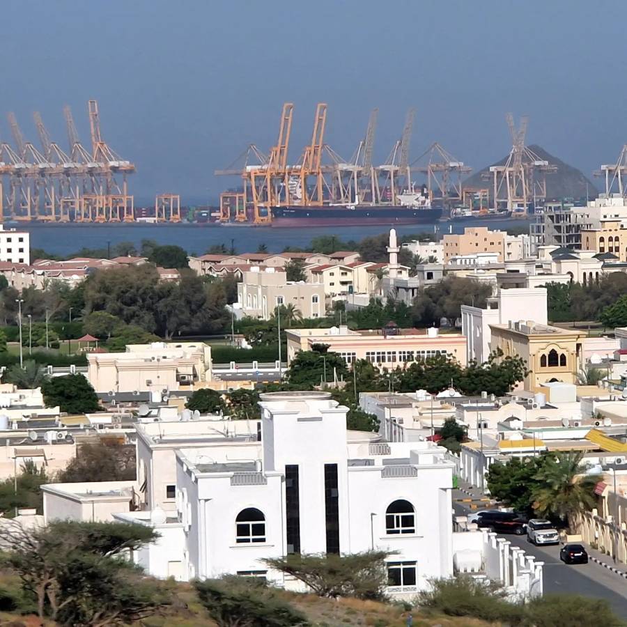 Es ist soweit, das Meer ist wärmer als der Pool. Darum beschließen wir heute an den Golf von Oman zu fahren, in der Hoffnung, dass der Wind hier etwas Kühler ist. Wir entscheiden uns für die Strandstadt Khorfakkan, welche einen Hochseehafen mit einem Container-Terminal besitzt.